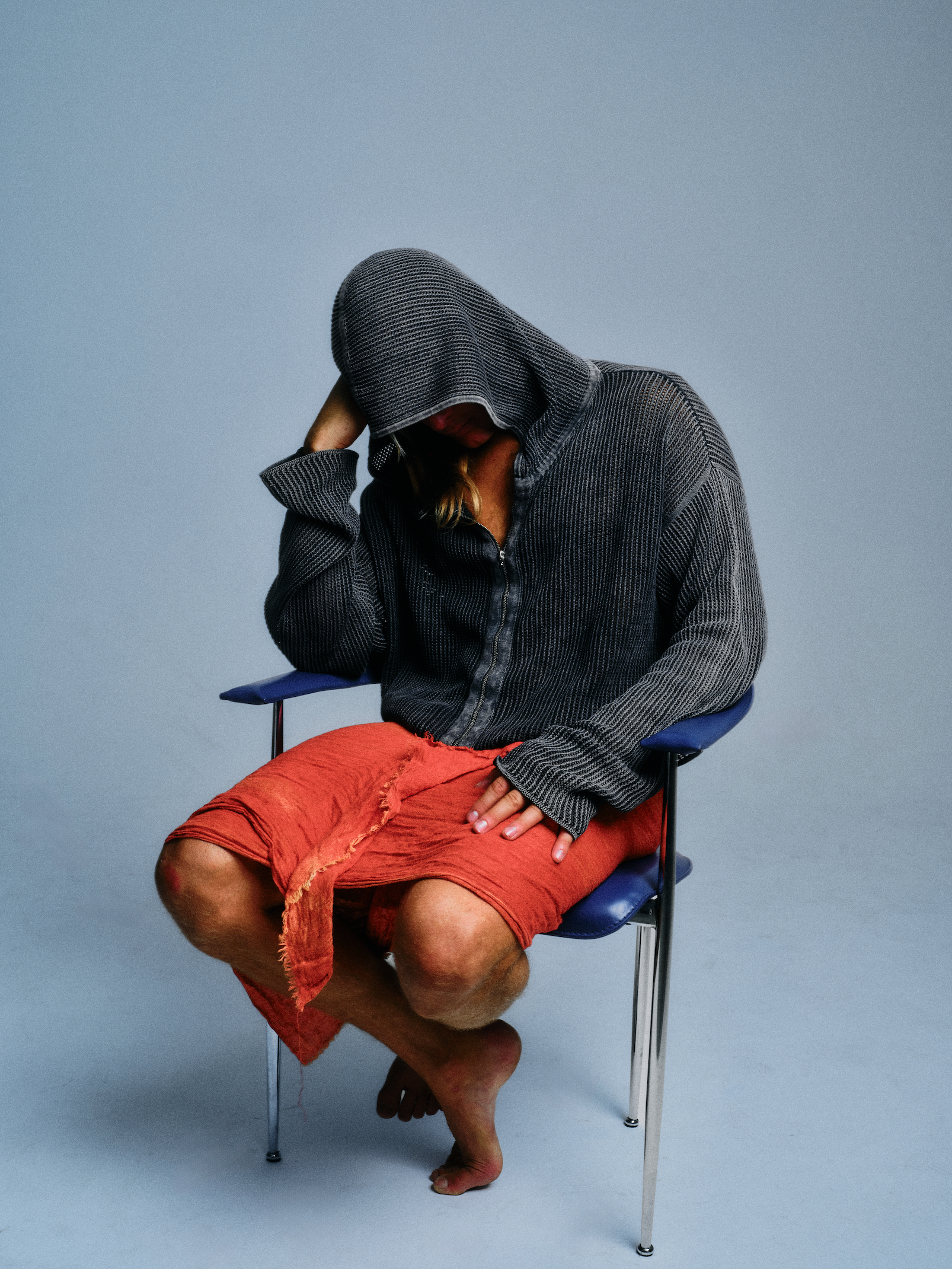 CROCHET KNITTED LONG SLEEVE HOODED SWEATER FROM TURKISH COTTON. METAL ZIPPER AT FRONT. THREE SEPERATE DISTRESS WASH TECHNIQUES APPLIED THROUGHOUT GARMENT. MADE IN ISTANBUL.
